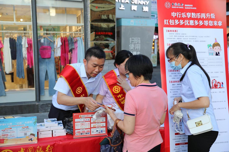 三亚分行员工在活动现场向市民介绍数字人民币活动。新华网发