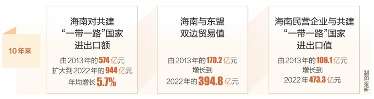 今年是共建“一带一路”倡议提出十周年,同频共振的海南外贸事业交出了一份亮丽答卷。10月10日,海南日报记者从海口海关获悉,共建“一带一路”倡议提出以来,海南对共建“一带一路”国家(以下简称共建国家)进出口规模稳步扩大,进出口额由2013年的574亿元扩大到2022年的944亿元,年均增长5.7%。