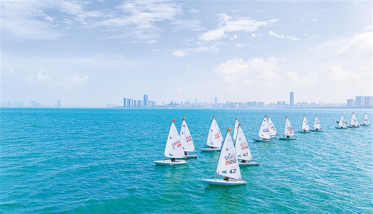 近些年,海口不断完善帆船帆板训练基地的配套设施建设,加之冬季风力、风向条件较好等得天独厚的气候条件,吸引了多支“国字号”运动队在此开展冬训。海南日报记者 袁琛 摄