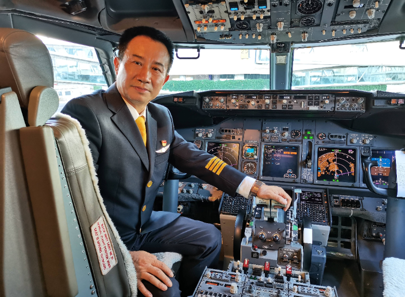 海南航空飞行员李雪峰在飞机驾驶舱。新华网发