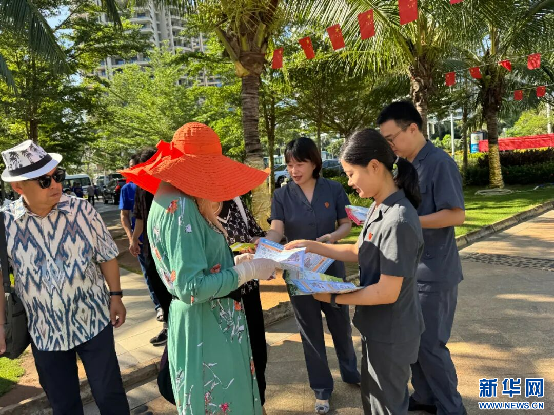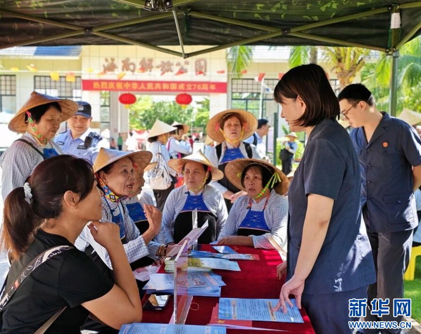 海南临高法院法官在景区开展普法宣传活动。“十一”假期来临,为保障游客合法权益,营造和谐、文明、有序的旅游环境,海南临高法院启动“党建+司法服务”全链条护旅模式,在重点景区设立旅游巡回法庭、党员先锋岗及旅游纠纷联调联动服务站,以司法动能织就假期旅游好“警”色。新华网发