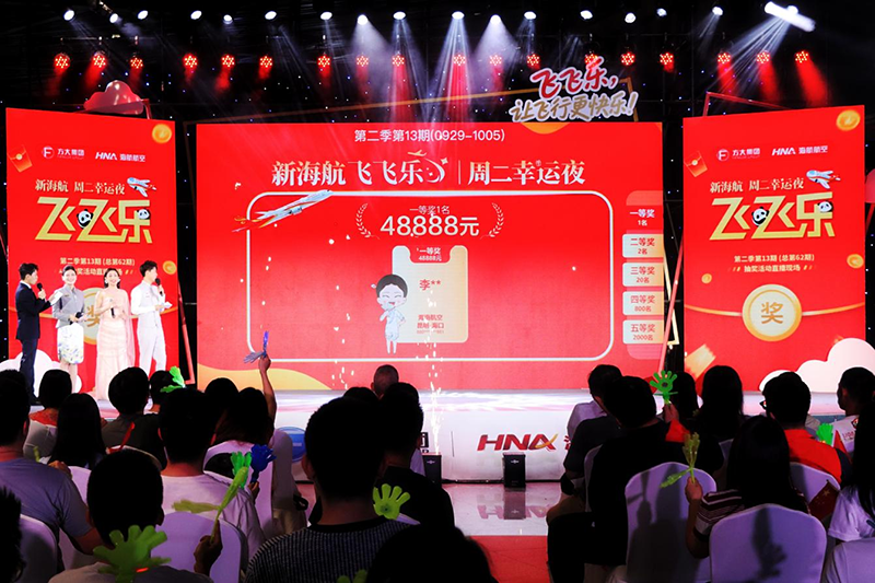 “飞飞乐”周二幸运夜现金抽奖活动是新海航与消费者共享发展成果、助力航空旅游经济发展的旅客回馈活动,每周二晚8点通过“海南航空”App直播抽奖,奖项方面设置了48888元、5000元、1000元、200元和50元五个等级的奖项回馈旅客。目前的第二季抽奖活动从规则设置上进一步提升“海南航空”App实名认证用户体验,为实名认证用户和旅客带来更多惊喜与实惠。同时,如果符合指定条件,还有机会让抽奖机会翻倍,单人最高可获8倍抽奖机会。