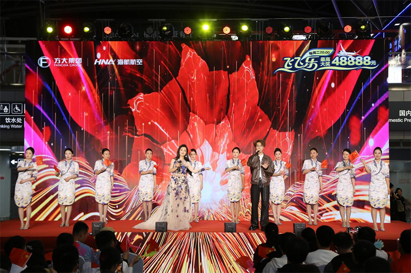 10月14日,新海航“飞飞乐”周二幸运夜第二季第14期抽奖直播在北京首都国际机场T2航站楼举行,本期直播联合北京首都国际机场,聚焦“经首都,游中国,看世界”的主题,共同推介北京首都国际机场进出港航线、优质服务及服务产品,还在现场送出丰厚现金大奖和精美文创好礼。
