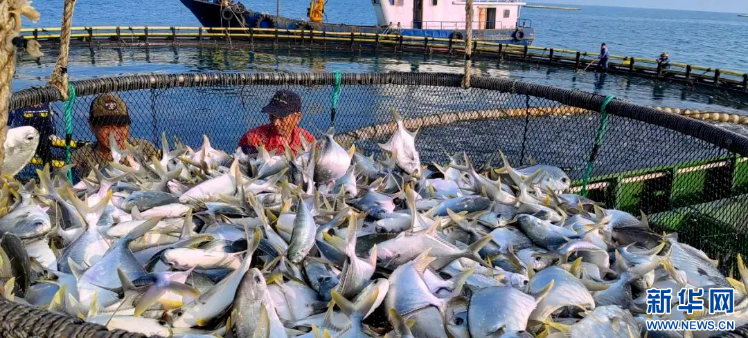 澄迈县桥头镇玉包村网箱养殖收获丰收。新华网发