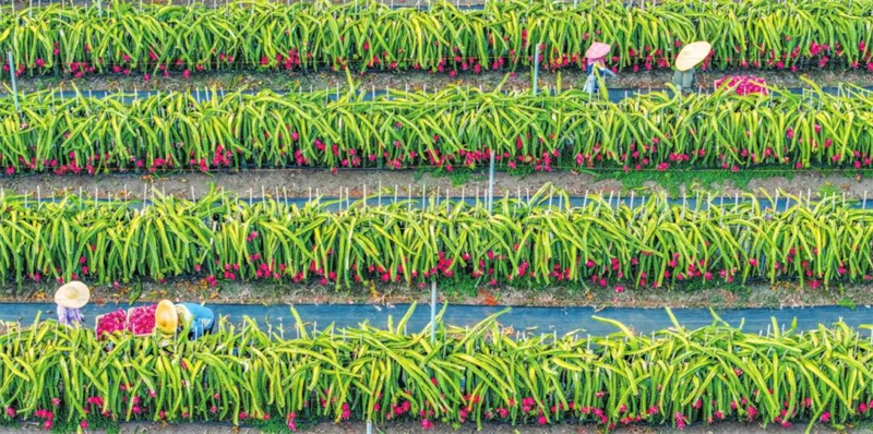在海口东山现代农业产业园,进口喷灌设备构建起水肥一体化精准灌溉系统,为每一株火龙果配备专属“营养师”,720亩火龙果年产量达40多万斤。“我们一边学习技术一边打工,一天能挣140元,公司还买了保险。”东山镇儒万村村民陈学英的话,道出了农民参与智慧农业的切实获得感。