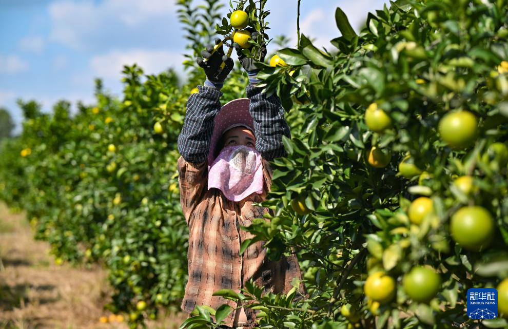 11月14日,农民在澄迈县福山镇永文村的福橙种植基地采摘福橙。新华社记者 郭程 摄