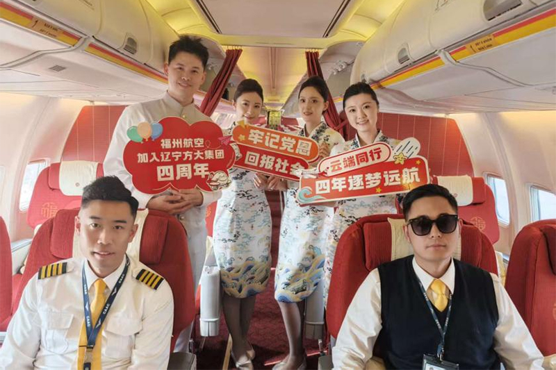 12月7日,在福州飞往沈阳的FU6523航班上,福州航空有限责任公司(以下简称“福州航空”)举办了一场别开生面的“空中生日会”。12月8日,是福州航空加入辽宁方大集团四周年纪念日,福州航空通过主题客舱活动,与旅客共同见证这一重要时刻。