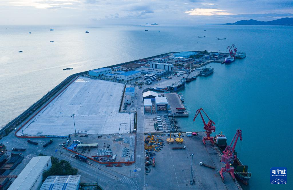 在海南自贸港重点园区——临高金牌港开发区拍摄的金牌港东作业区西码头(无人机照片,11月22日摄)。新华社记者 蒲晓旭 摄