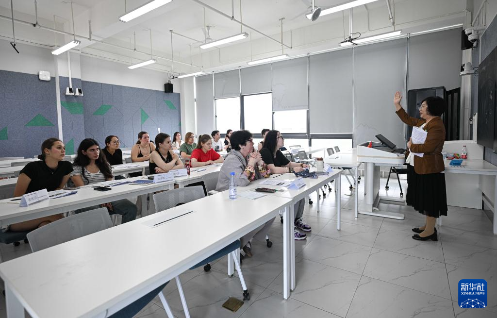 在海南自贸港重点园区——陵水黎安国际教育创新试验区,北京语言大学海南国际学院的老师给外籍学生上中文听说课(11月5日摄)。新华社记者 蒲晓旭 摄