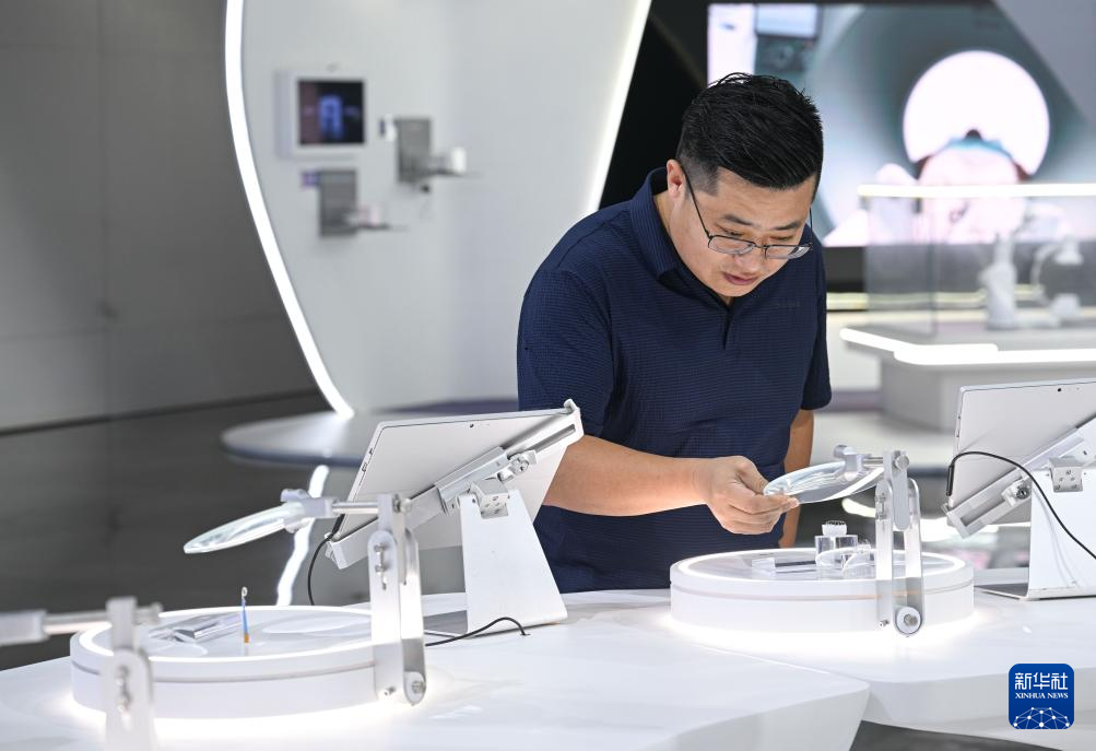 观众在海南自贸港重点园区——博鳌乐城国际医疗旅游先行区观看“永不落幕”国际创新药械展(10月27日摄)。新华社记者 蒲晓旭 摄