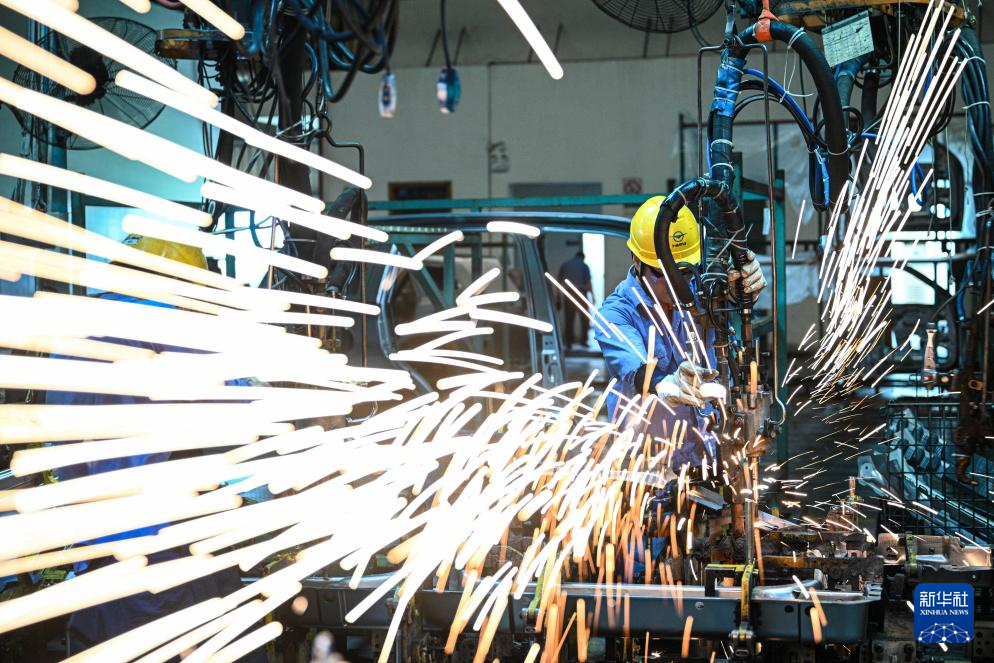 工人在海南自贸港重点园区——海口国家高新技术产业开发区海马工业园焊装车间作业(11月14日摄)。新华社记者 蒲晓旭 摄