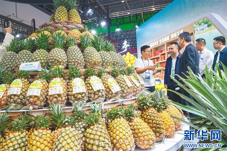 多种凤梨品种亮相冬交会。新华网发(袁琛 摄)