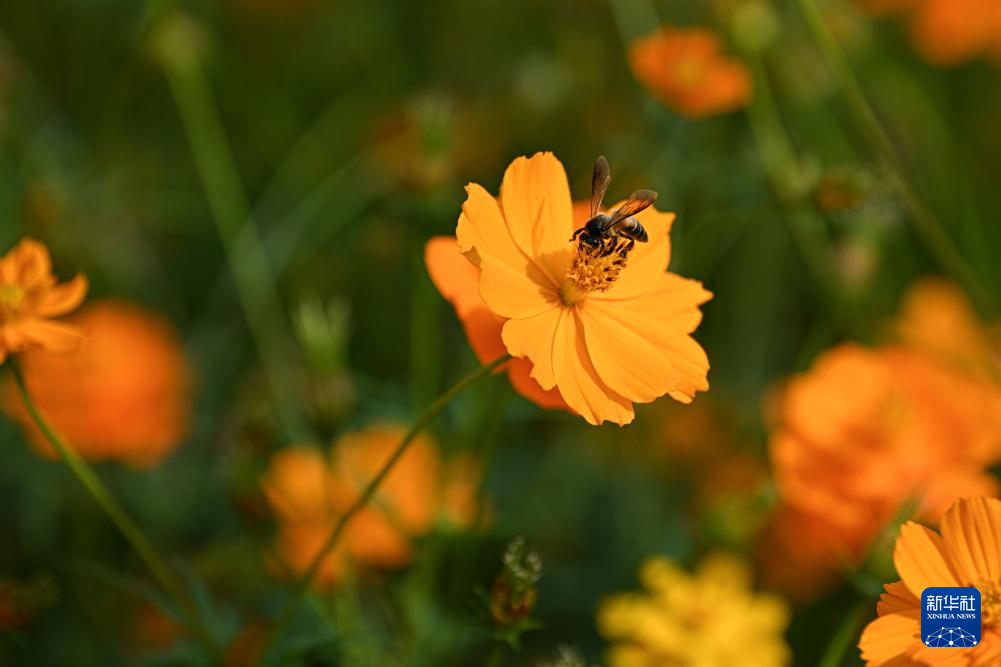 近日,在位于海南省昌江黎族自治县的聚源花卉博览园内,格桑花、硫华菊、三角梅等花卉竞相绽放,吸引了大批游客徜徉花海、打卡拍照,在诗意田园中邂逅烂漫春天。