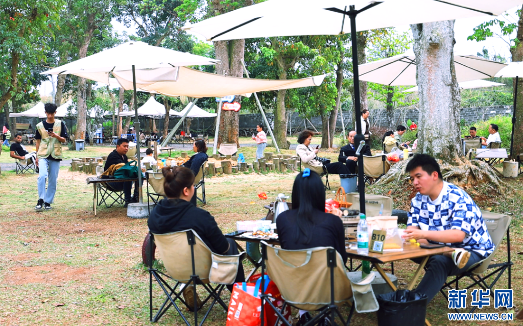 春节期间,市民游客在海口市秀英区大树农场休闲放松。