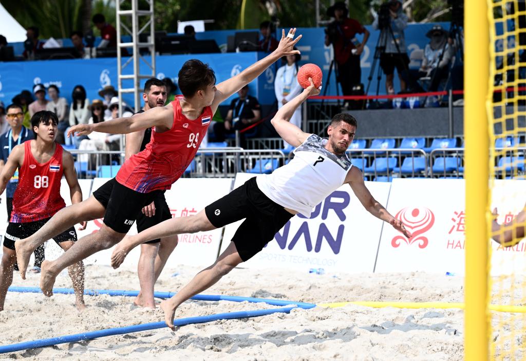 4月21日,沙滩手球开赛,这是三亚亚沙会的首个开赛项目。 新华社记者 杨冠宇 摄
