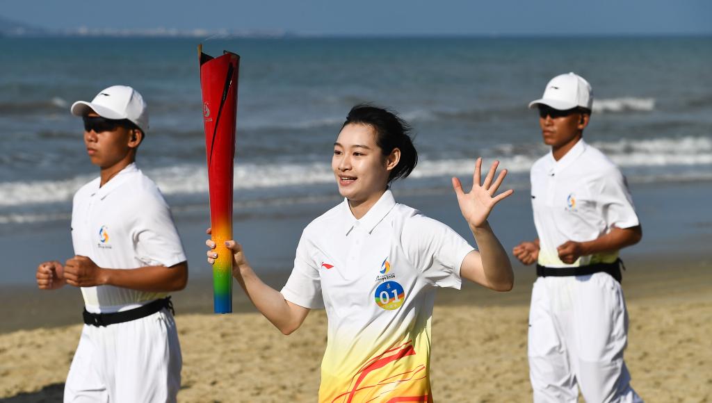 3月30日,第六届亚洲沙滩运动会火炬传递活动在海南三亚举行。 新华社记者 杨冠宇 摄
