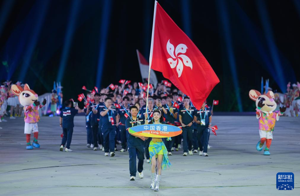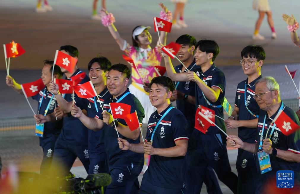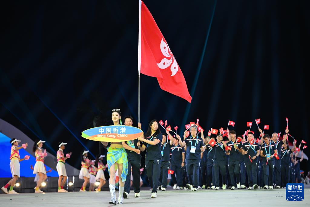 4月22日,中国香港体育代表团在开幕式上入场。新华社记者 陈思汗 摄