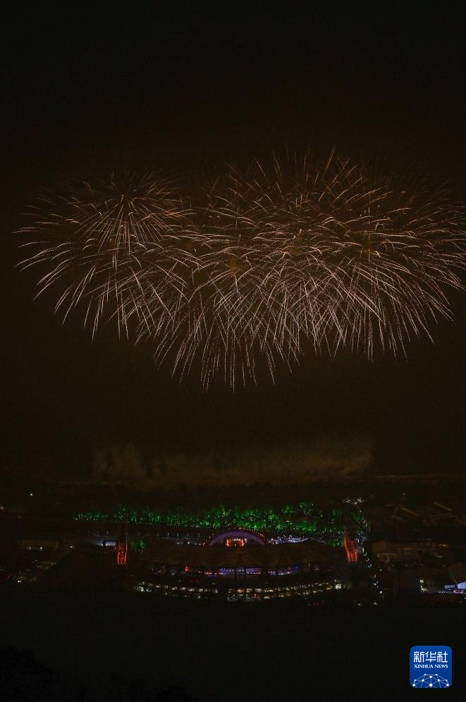 这是4月22日拍摄的开幕式上的焰火表演。新华社记者 李尕 摄