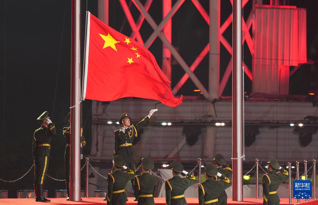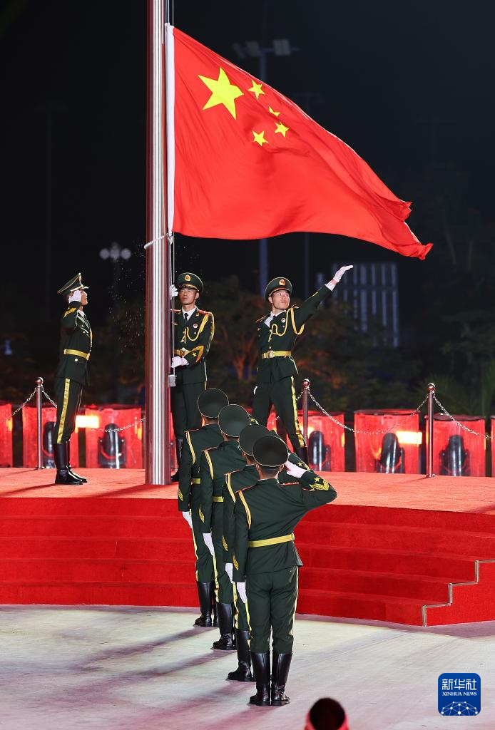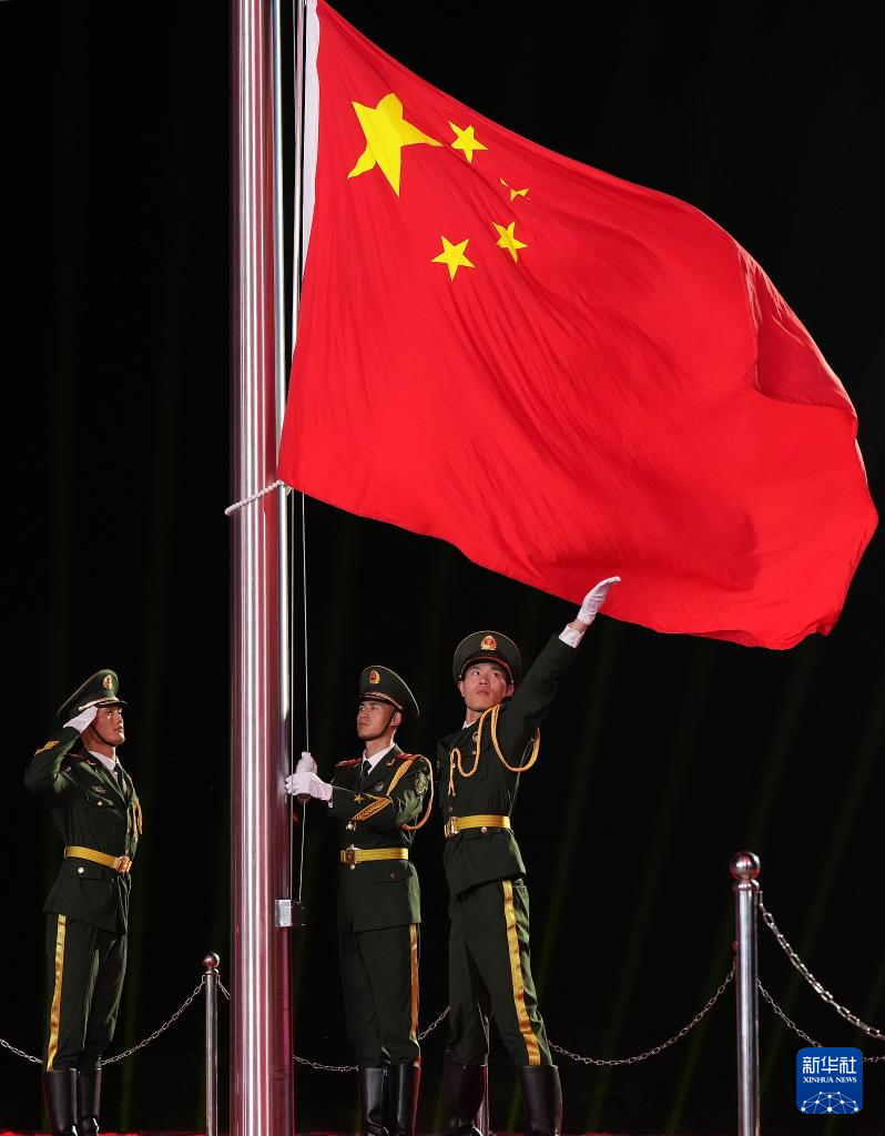 4月22日,中华人民共和国国旗在开幕式上升起。新华社记者 胥冰洁 摄