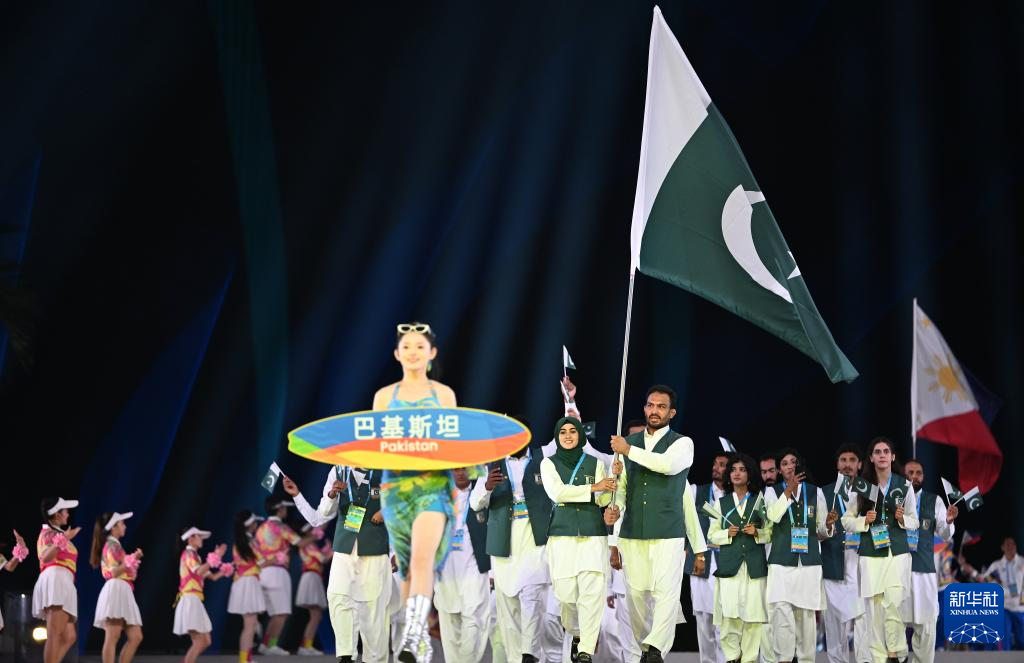 4月22日,巴基斯坦体育代表团在开幕式上入场。新华社记者 赵子硕 摄