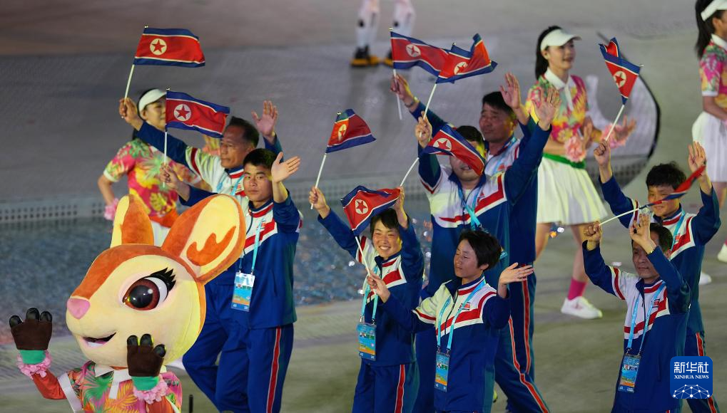 4月22日,朝鲜体育代表团在开幕式上入场。新华社记者 胥冰洁 摄