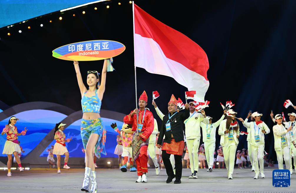 4月22日,印度尼西亚体育代表团在开幕式上入场。新华社记者 赵子硕 摄
