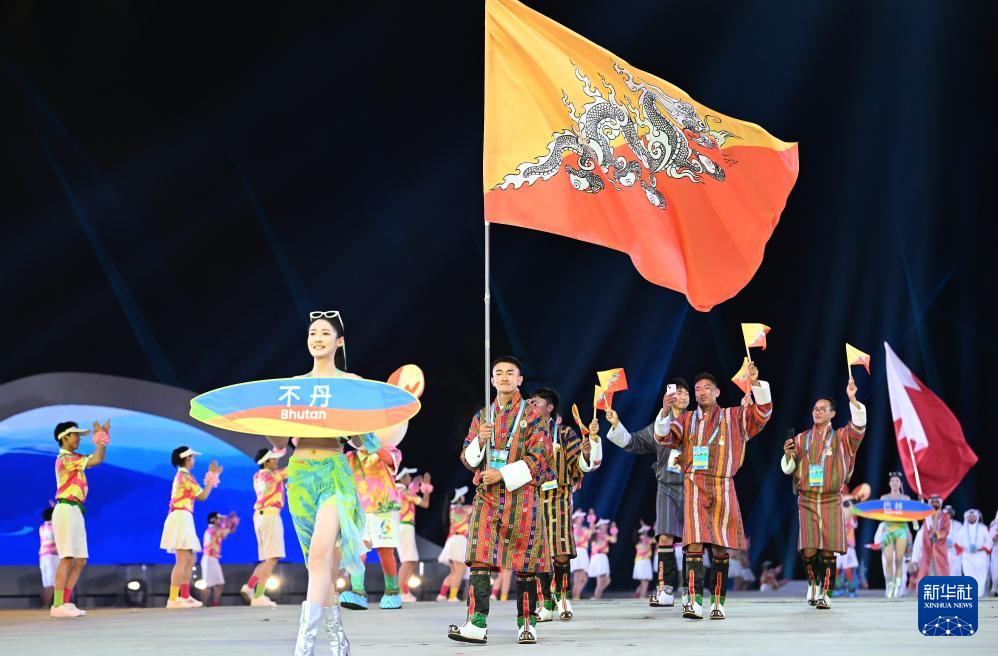 4月22日,不丹体育代表团在开幕式上入场。新华社记者 赵子硕 摄