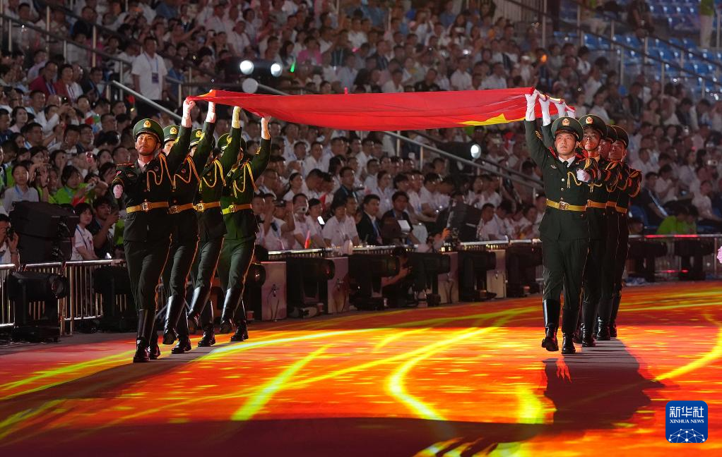 4月22日,中华人民共和国国旗在开幕式上入场。新华社记者 赵颖全 摄