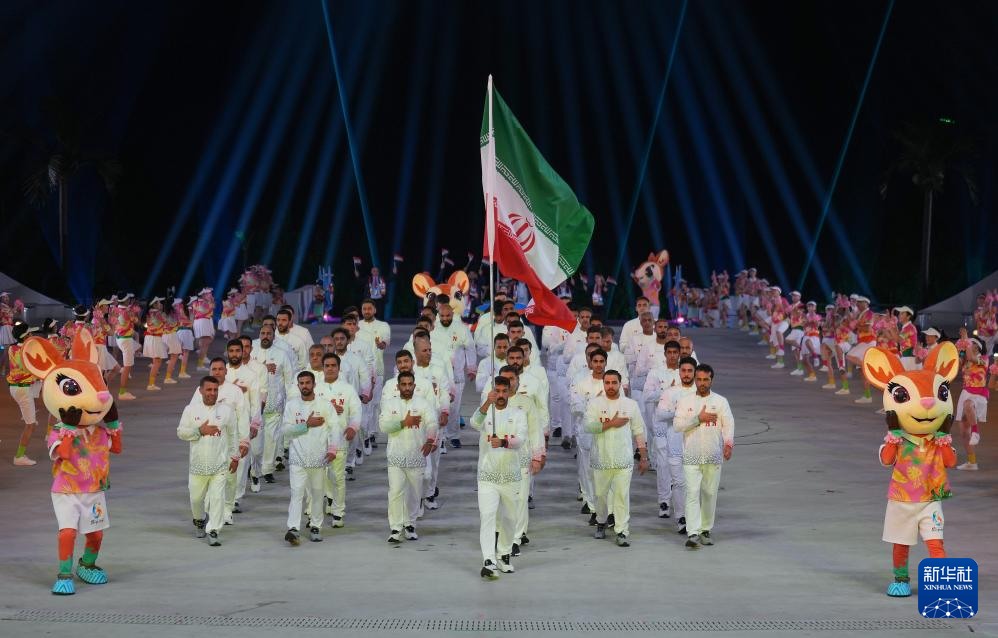 4月22日,伊朗体育代表团在开幕式上入场。新华社记者 李尕 摄