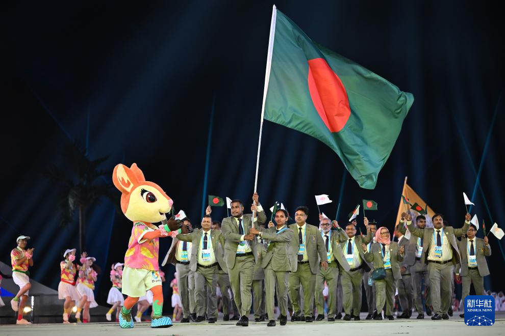 4月22日,孟加拉国体育代表团在开幕式上入场。新华社记者 赵子硕 摄