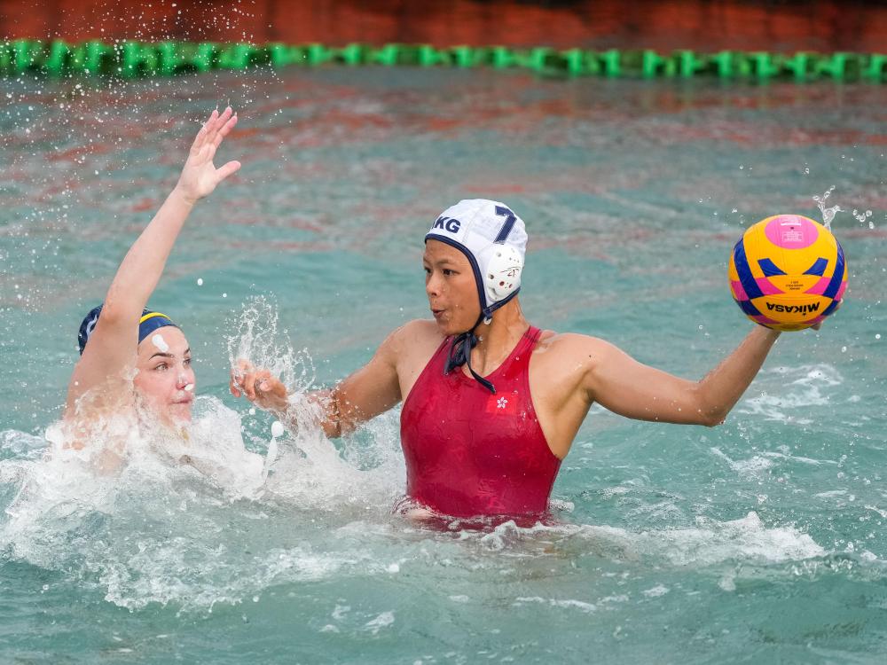 4月23日,第六届亚洲沙滩运动会女子水球单循环决赛中,中国香港队1:3不敌哈萨克斯坦队。新华社记者 陈思汗 摄