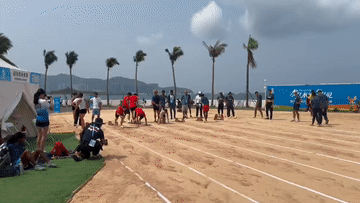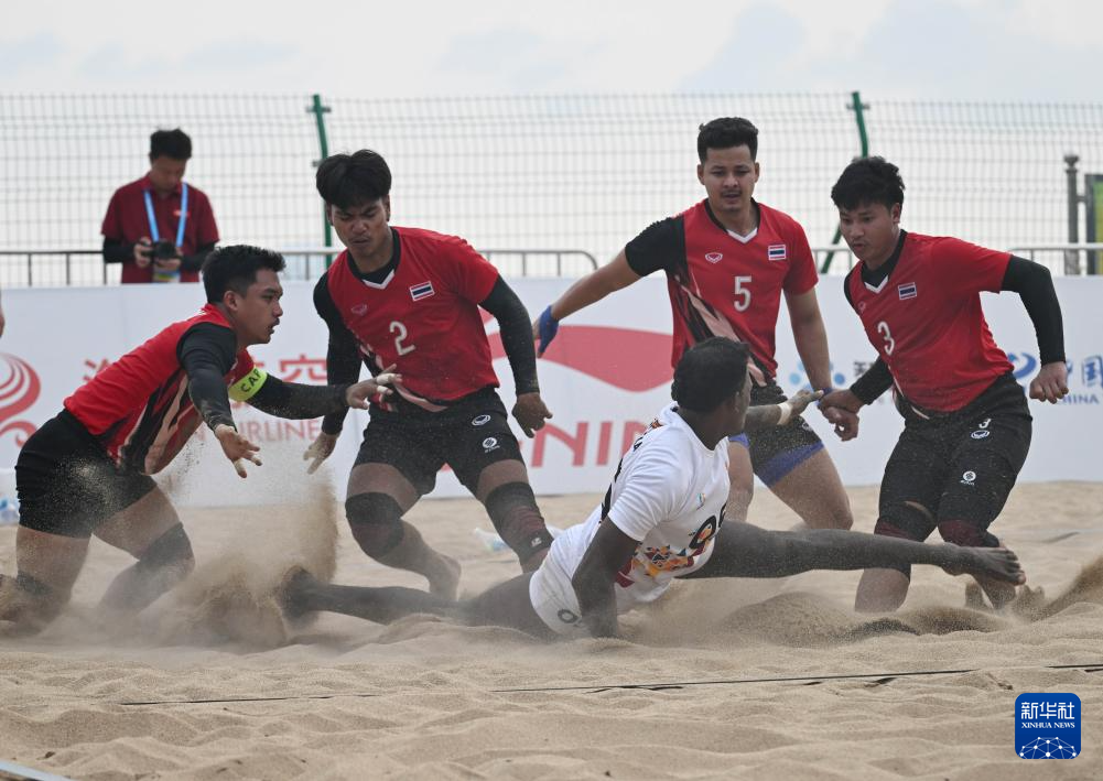 图为第六届亚沙会沙滩卡巴迪男子小组赛。新华社记者 赵子硕 摄