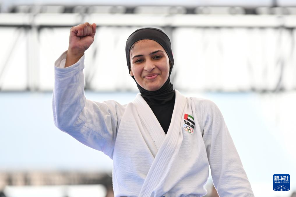 4月23日,阿斯玛·胡萨尼在赛后庆祝胜利。新华社记者 贝赫 摄