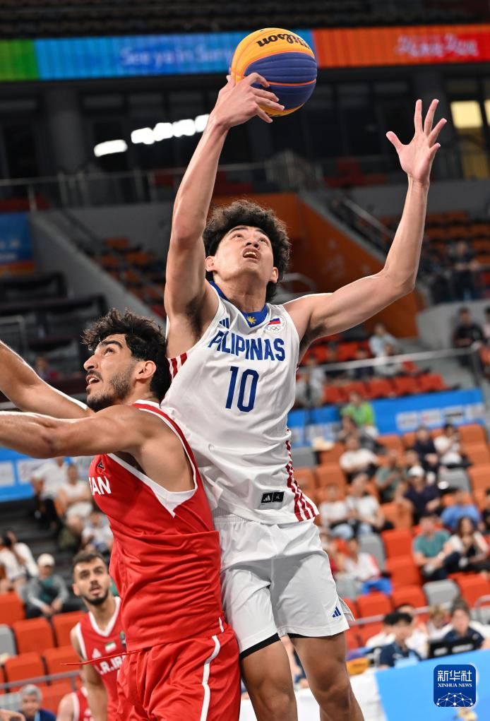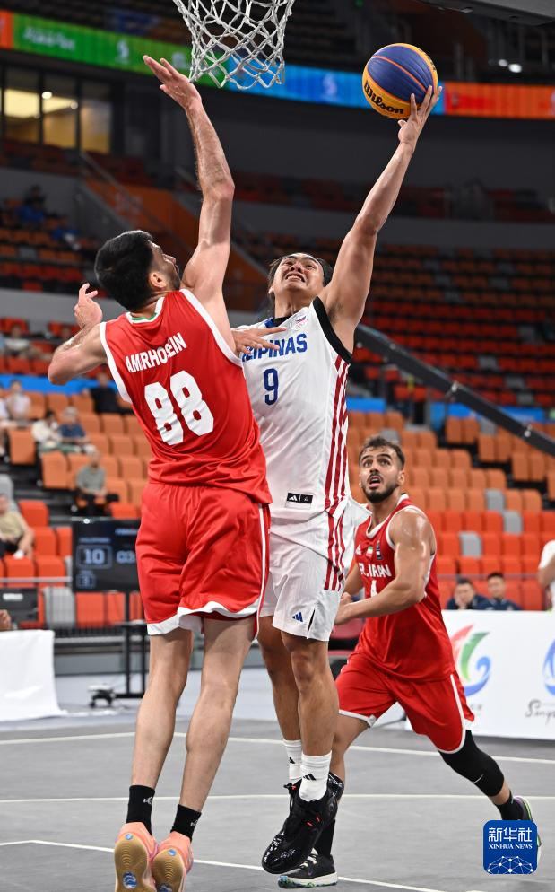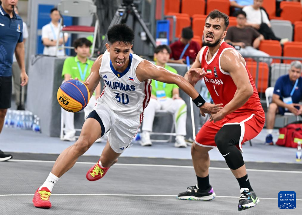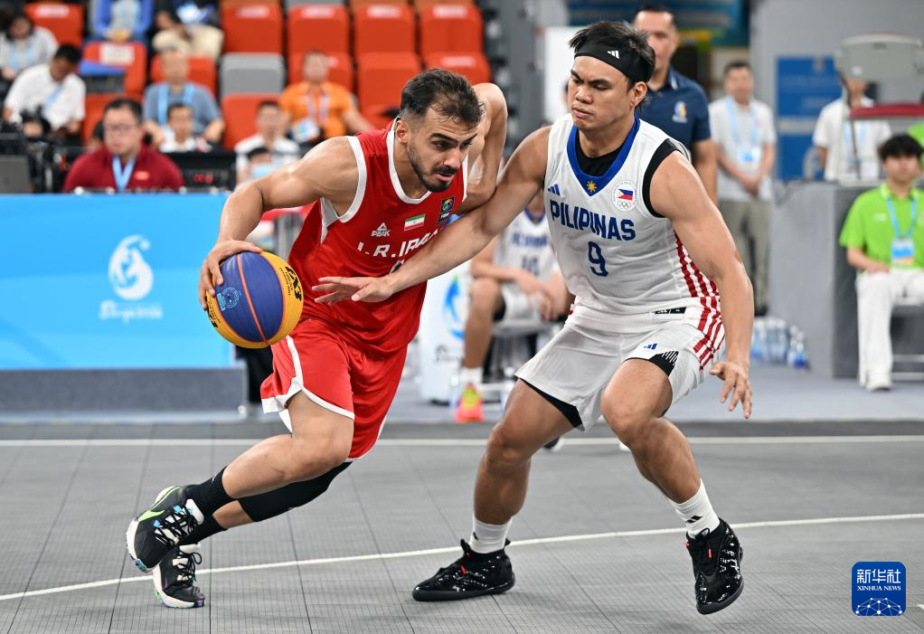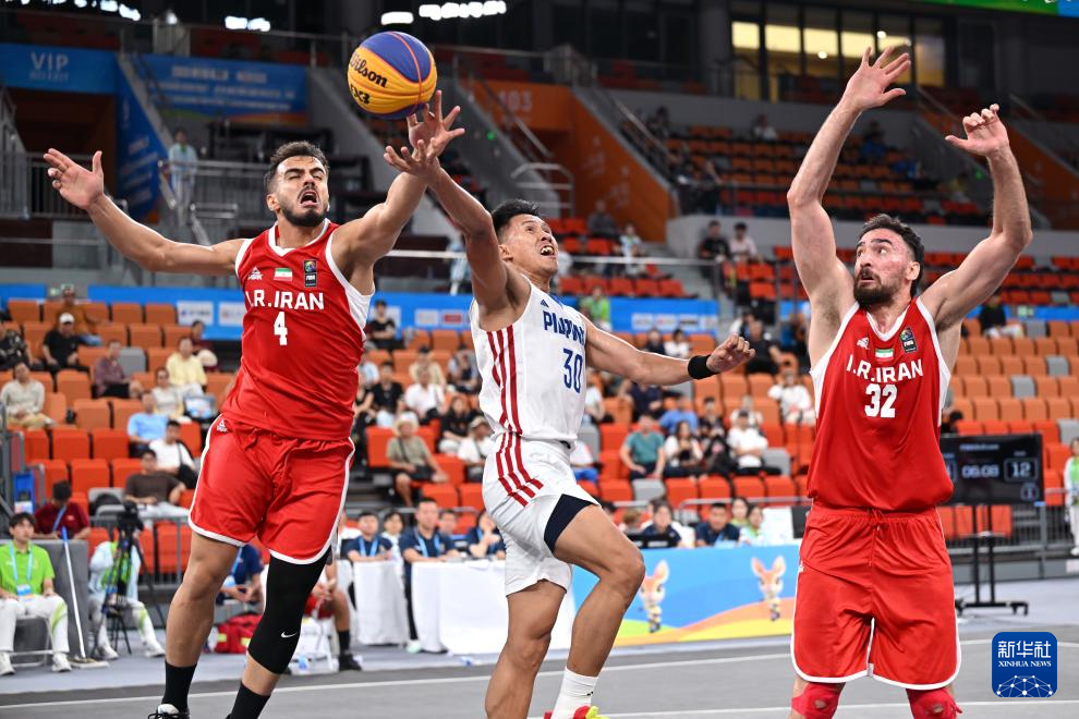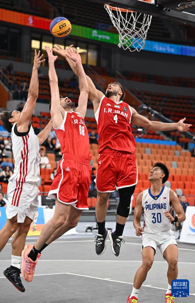 4月27日,在海南三亚举行的第六届亚洲沙滩运动会三人篮球男子小组赛中,伊朗队21比14战胜菲律宾队。