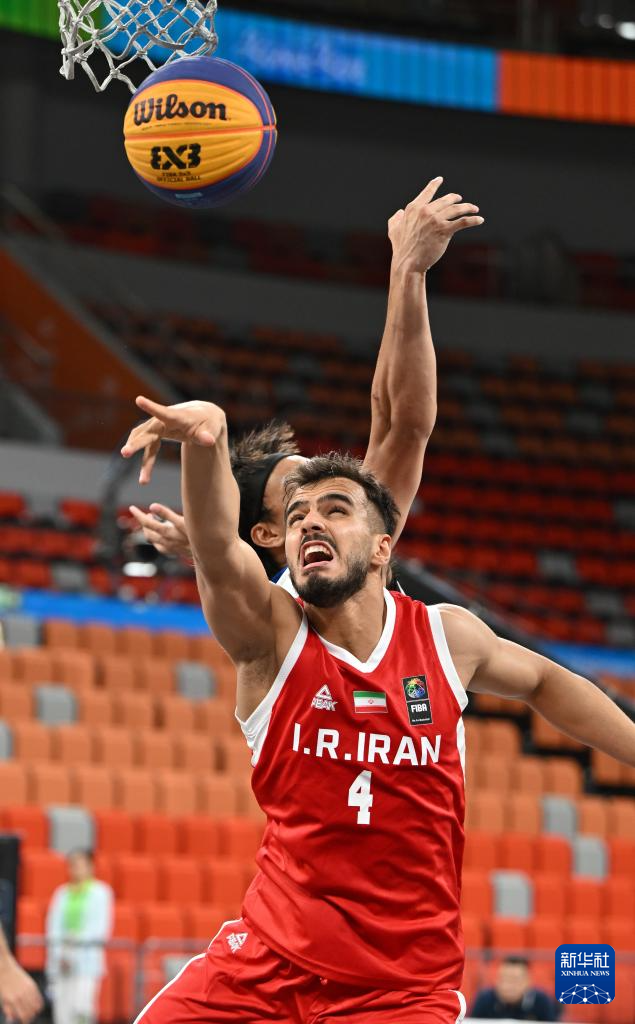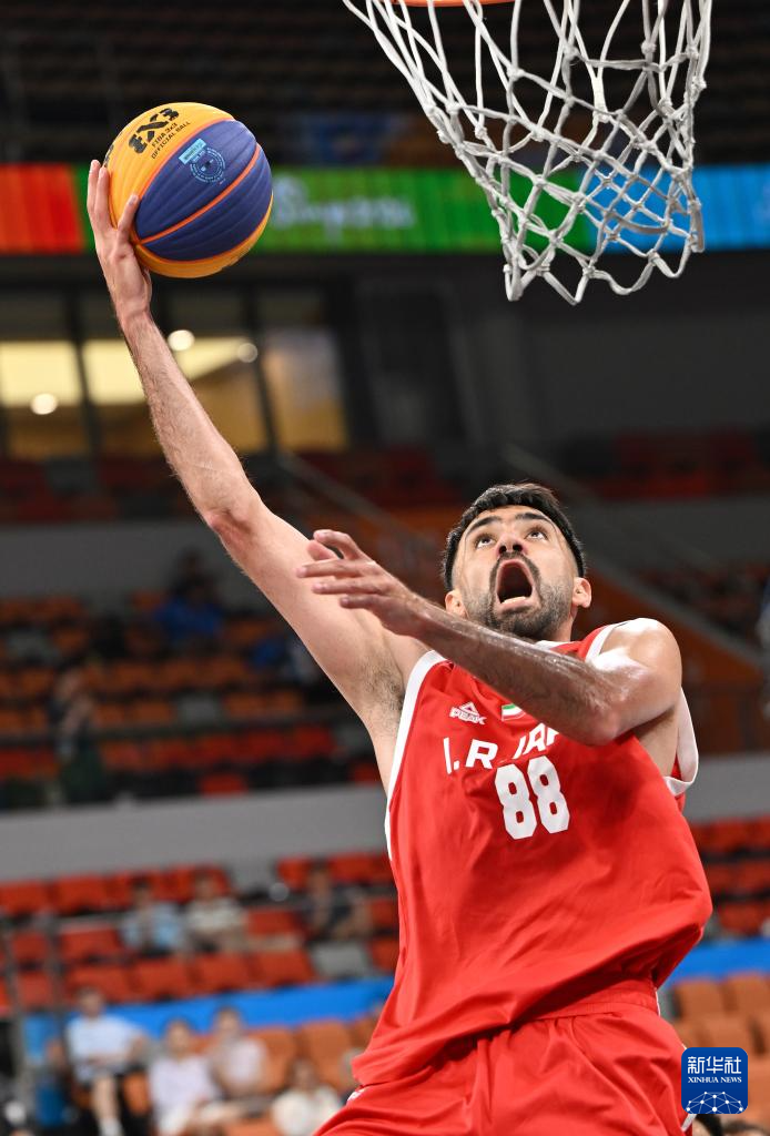 4月27日,伊朗队球员亚扎尔卢在比赛中上篮。新华社记者 郭程 摄