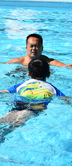 新华网发7月25日,海南省屯昌县向阳中心小学的泳池内欢声笑语不断,20多名孩子在老师与家长的陪伴下,认真练习游泳动作。