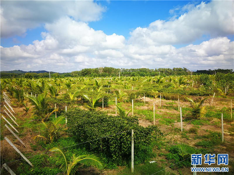 海南移动帮扶五星村探索一地多金“椰林+”的多业态,在金椰子林下套种瓜菜168亩。新华网发
