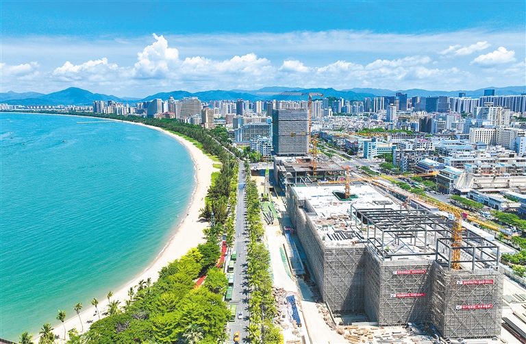 近日,俯瞰位于三亚湾畔的三亚合联中央商务区项目建设现场,整个建设项目已现雏形。