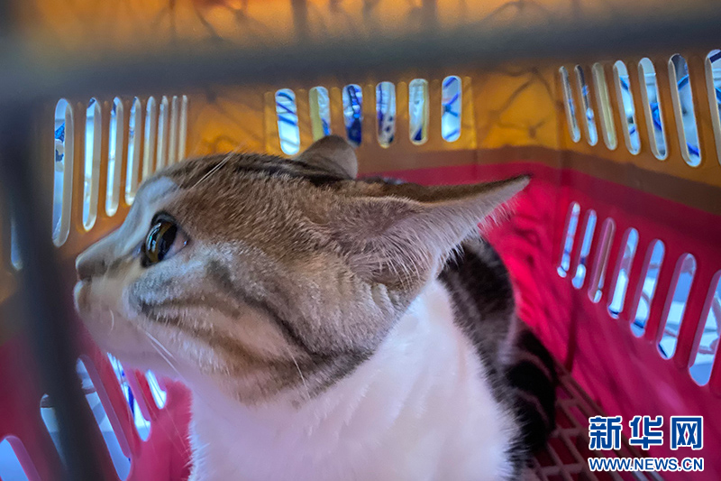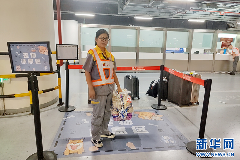 工作人员将“小可爱”带至宠物休息区。新华网发