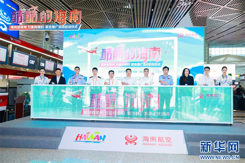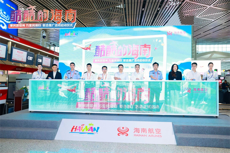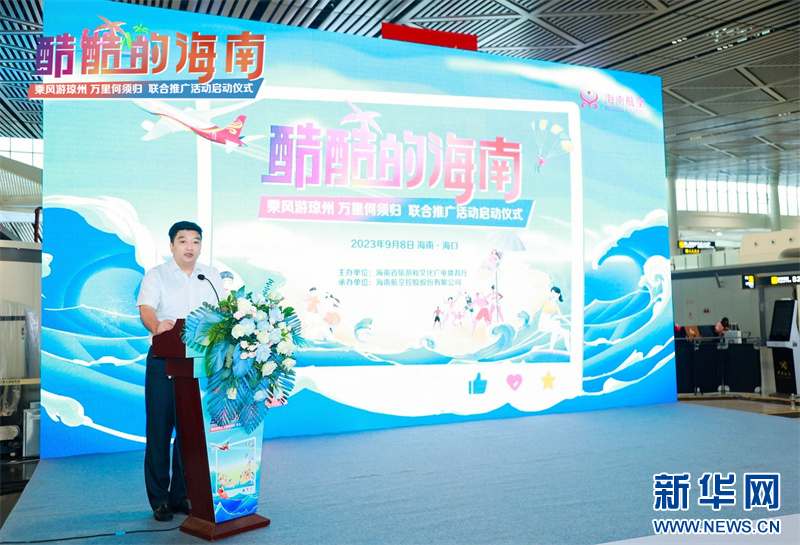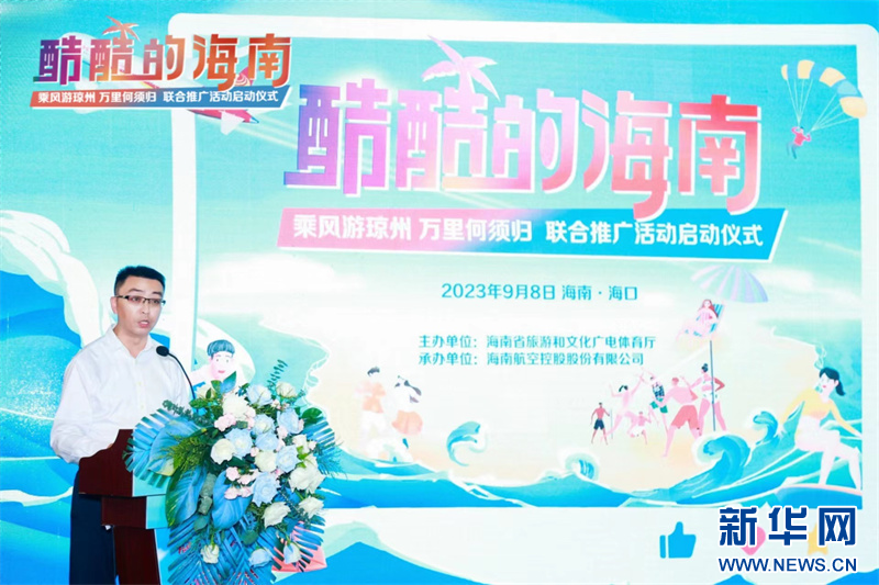 9月8日下午, 由海南省旅游和文化广电体育厅主办,海南航空控股股份有限公司承办的“酷酷的海南——乘风游琼州 万里何须归”联合推广活动启动仪式在海口美兰国际机场T2航站楼举办。