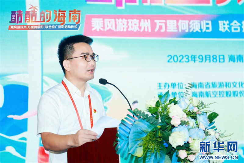 海南省旅文厅国内市场和节庆活动处处长符峰华致辞。新华网发