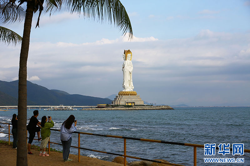 眼下正值三亚旅游冬季旺季,宜人的气候和迷人的热带风光引来大批游客前来观光旅游。在南山文化旅游区,游人如织,人们在美景中乐享暖冬,放松身心。(陈文武)