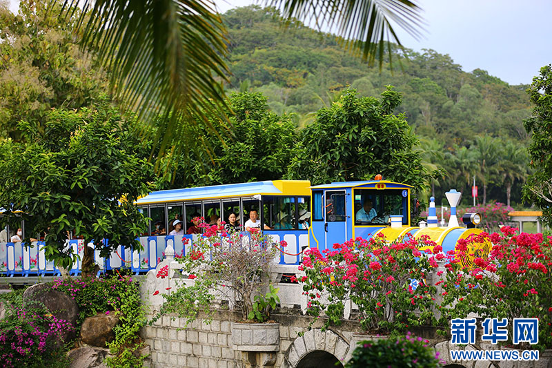 初冬时节,游客在乘坐观光车三亚南山文化旅游区游览。新华网发