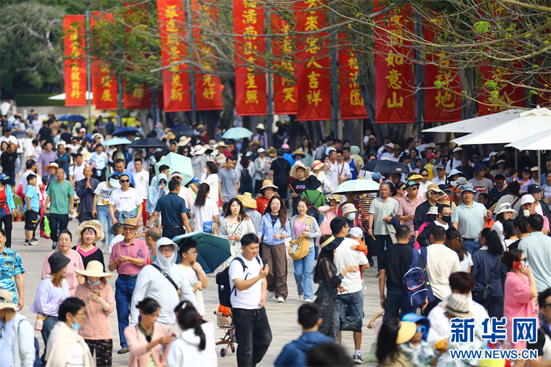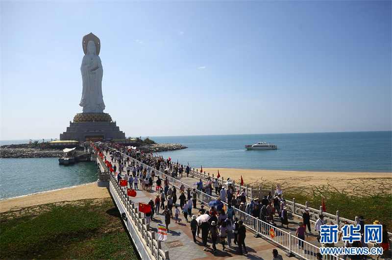 2月15日,三亚南山文化旅游区游人如织。春节假期,海南三亚旅游迎来客流高峰,南山文化旅游区欢乐祥和、游人如织。人们纷纷走出家门、亲近自然、感受传统文化,体验新春庙会和舌尖上的素食美味。新华网发