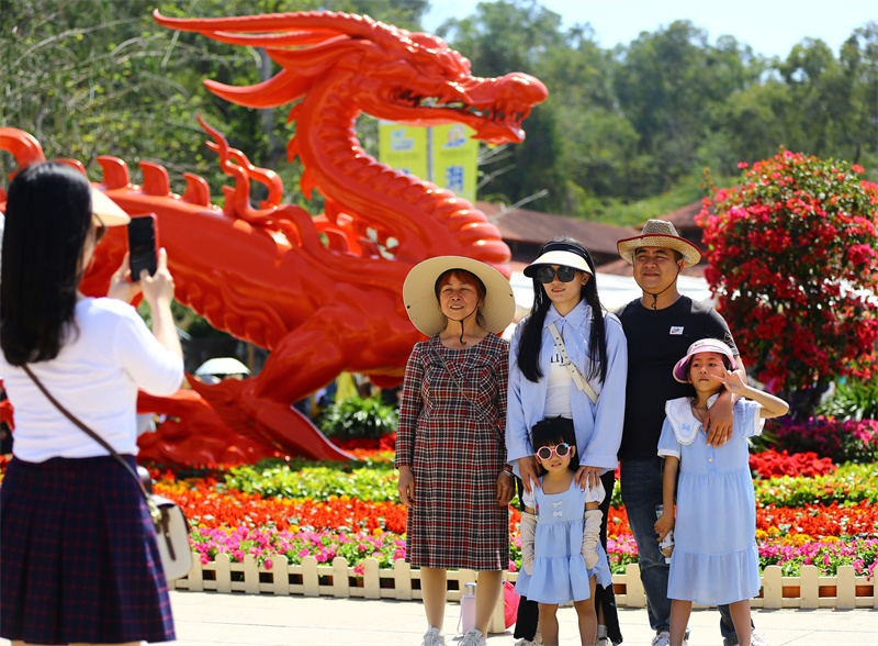 2月15日,家长带着孩子在海南省三亚市南山文化旅游区游玩。新华网发