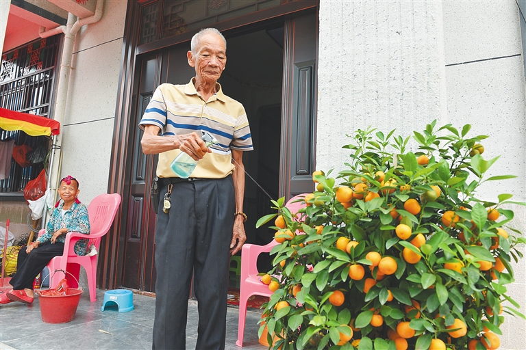 屯昌合水新村村民盘大学在庭院种植盆栽。林小丹 供图
