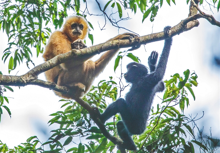 自2003年以来,海南积极开展海南长臂猿栖息地生态修复,共修复栖息地近5000亩。海南长臂猿种群数量增加至7群42只