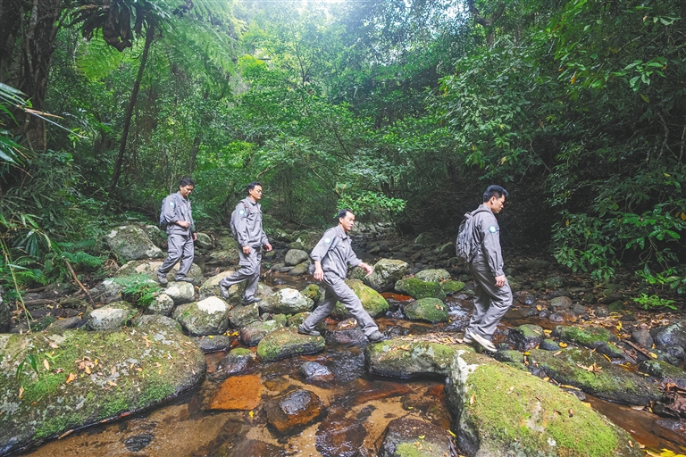 在海南热带雨林国家公园五指山片区,护林员进山巡护。海南日报记者 李天平 摄