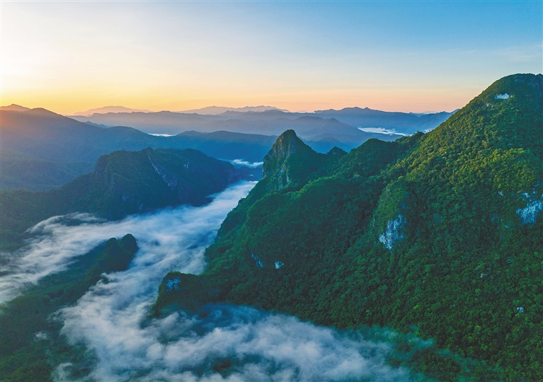 海南热带雨林国家公园霸王岭片区,晨光中的俄贤岭景色如画。海南日报记者 李天平 摄