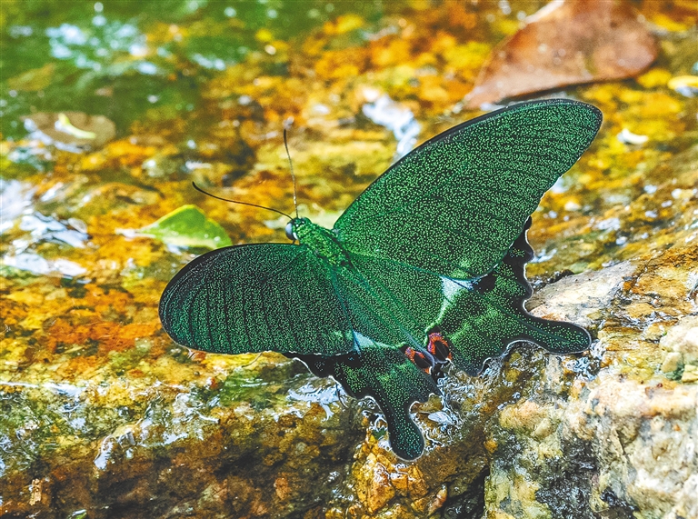在海南热带雨林国家公园霸王岭片区拍摄到的巴黎翠凤蝶。海南日报记者 李天平 摄